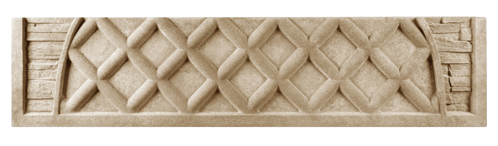 Ornamentový betonový plot představuje stylové řešení pro vaše oplocení. Propracovaný vystouplý design s výraznými kosočtvercovými motivy efektivně efektivně vymezí váš pozemek. Dekorativní boční panely s texturou přírodního kamene dodávají plotu mírně rustikální vzhled.