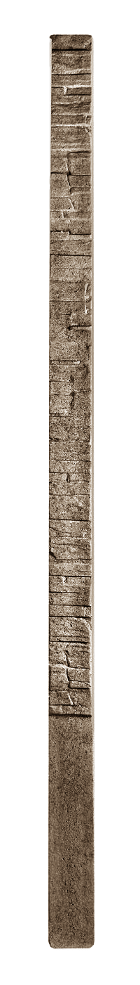 Plotový sloupek vyrobený z betonu má reliéfní texturu imitující přirozený vzhled štípaného kamene s nepravidelnými plochami, spárami a přirozenou kresbou. Tento design dodává plotu rustikální přírodní vzhled. Slouží jako nosný prvek pro betonové plotové desky. Je vhodnou volbou pro ty, kteří chtějí plot se vzhledem přírodního kamene, ale s výhodami betonového materiálu.